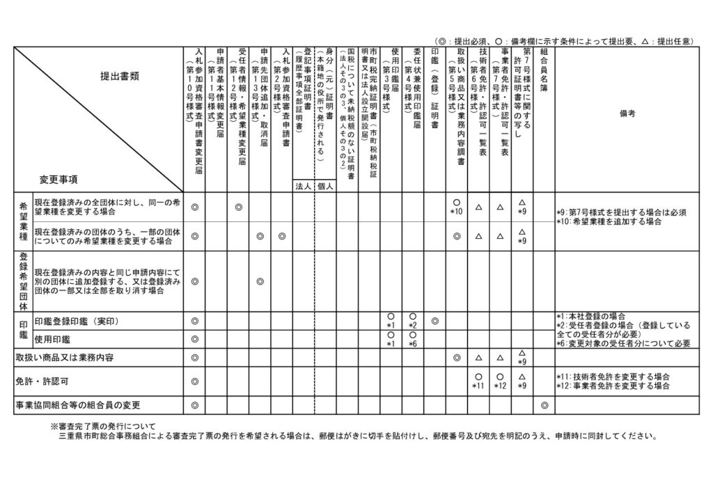 共同受付に申請をされた方で、申請書提出後に申請内容に変更が生じた場合は、下記の要領に基づき速やかに申請を行ってください。